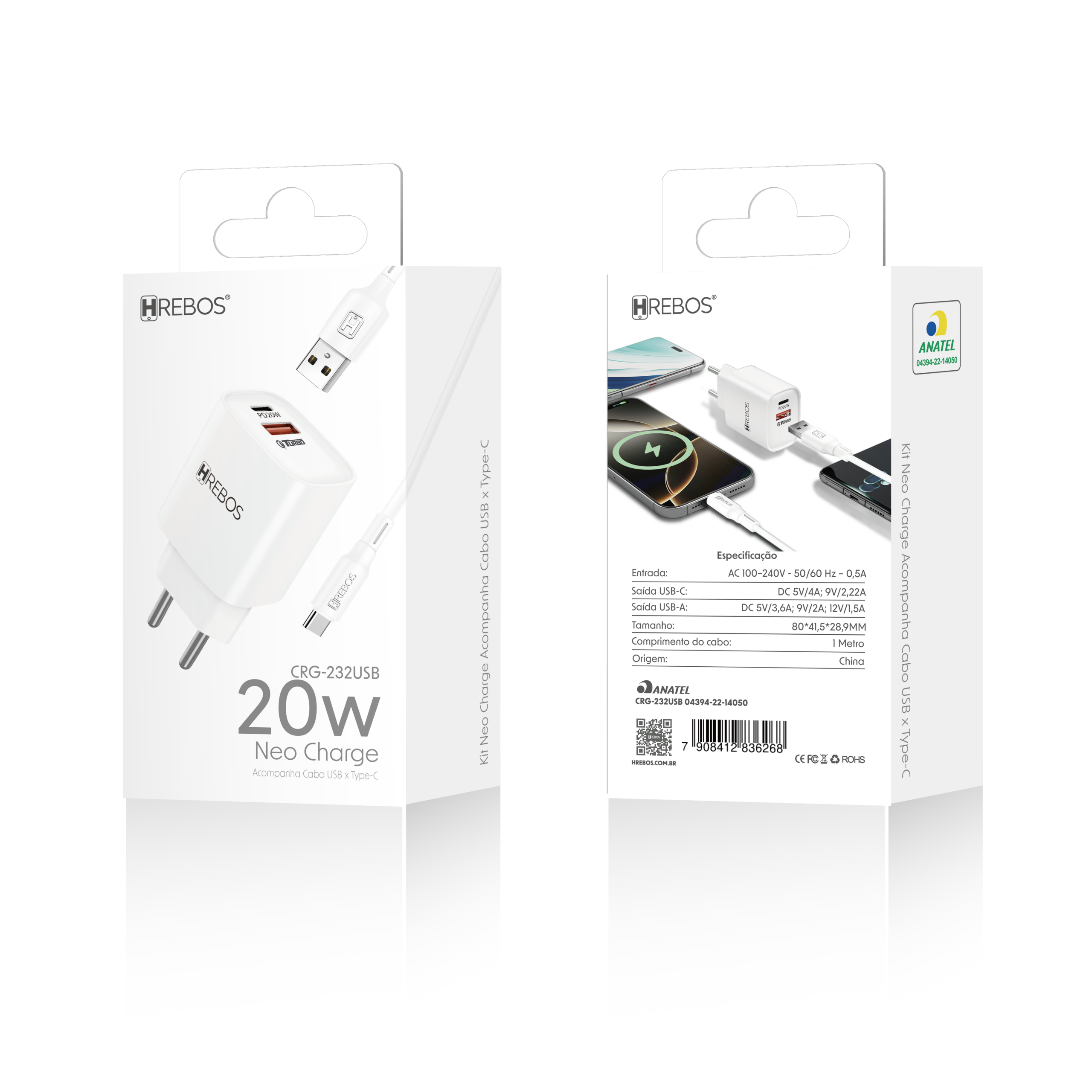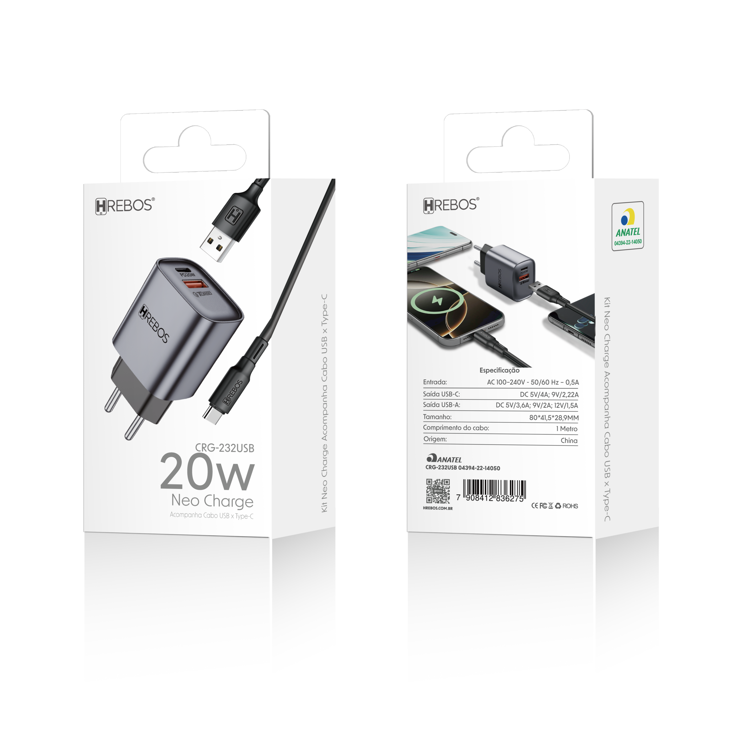 Disponível nas versões CRG-387 (carregador avulso), CRG-387CC (com cabo Type-C + Type-C) e CRG-387CI (com cabo Type-C + Lightning), é ideal para smartphones, tablets, notebooks e diversos dispositivos compatíveis.