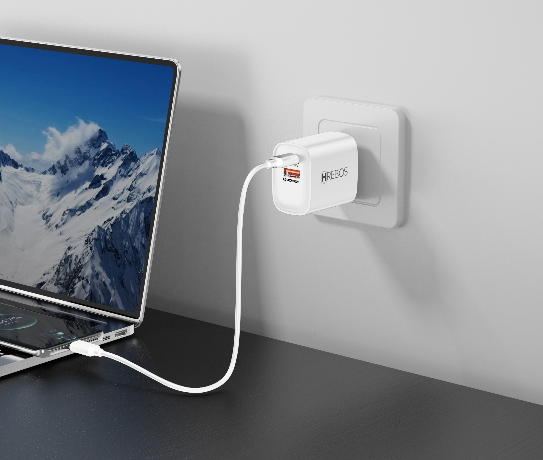 Hrebos Premium | Carregador Blink Charge 65W – Branco