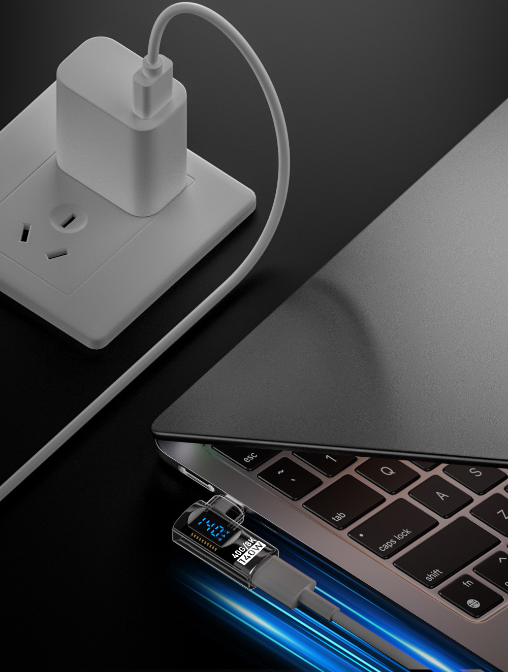 Além da carga ultrarrápida, também oferece transferência de dados de até 40 Gbps, permitindo uso com docks, hubs, SSDs externos e monitores de alta performance. Compacto, resistente e portátil, é o adaptador perfeito para setups profissionais e mobilidade.