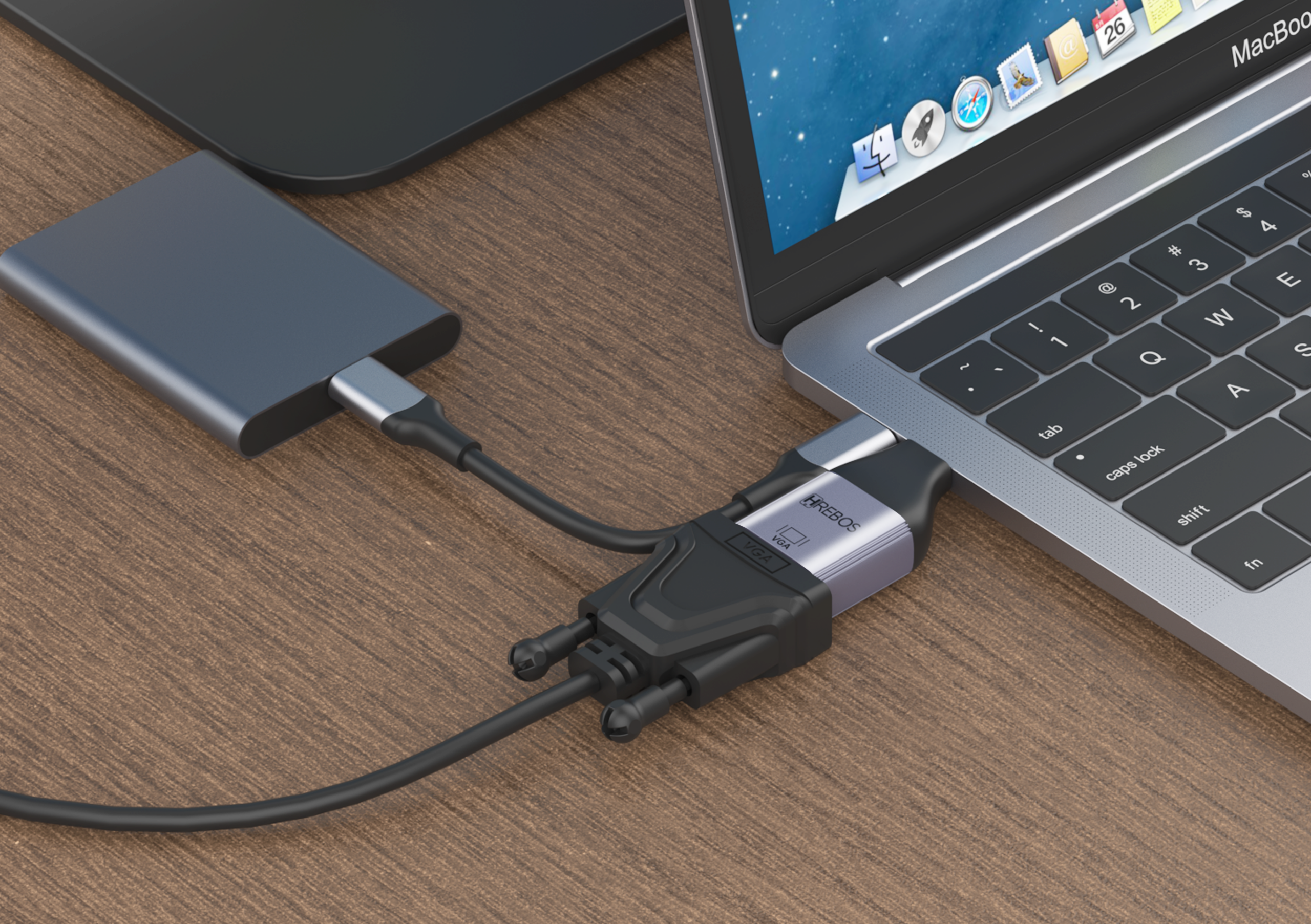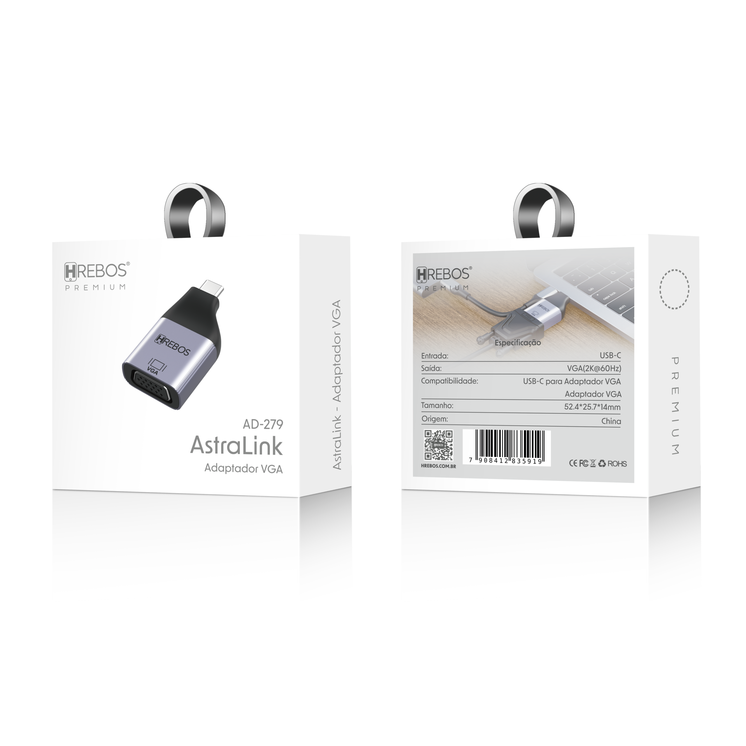 O Adaptador Hrebos AstralLink AD-279 é a solução ideal para conectar dispositivos com saída USB-C a monitores, projetores e telas com entrada VGA.