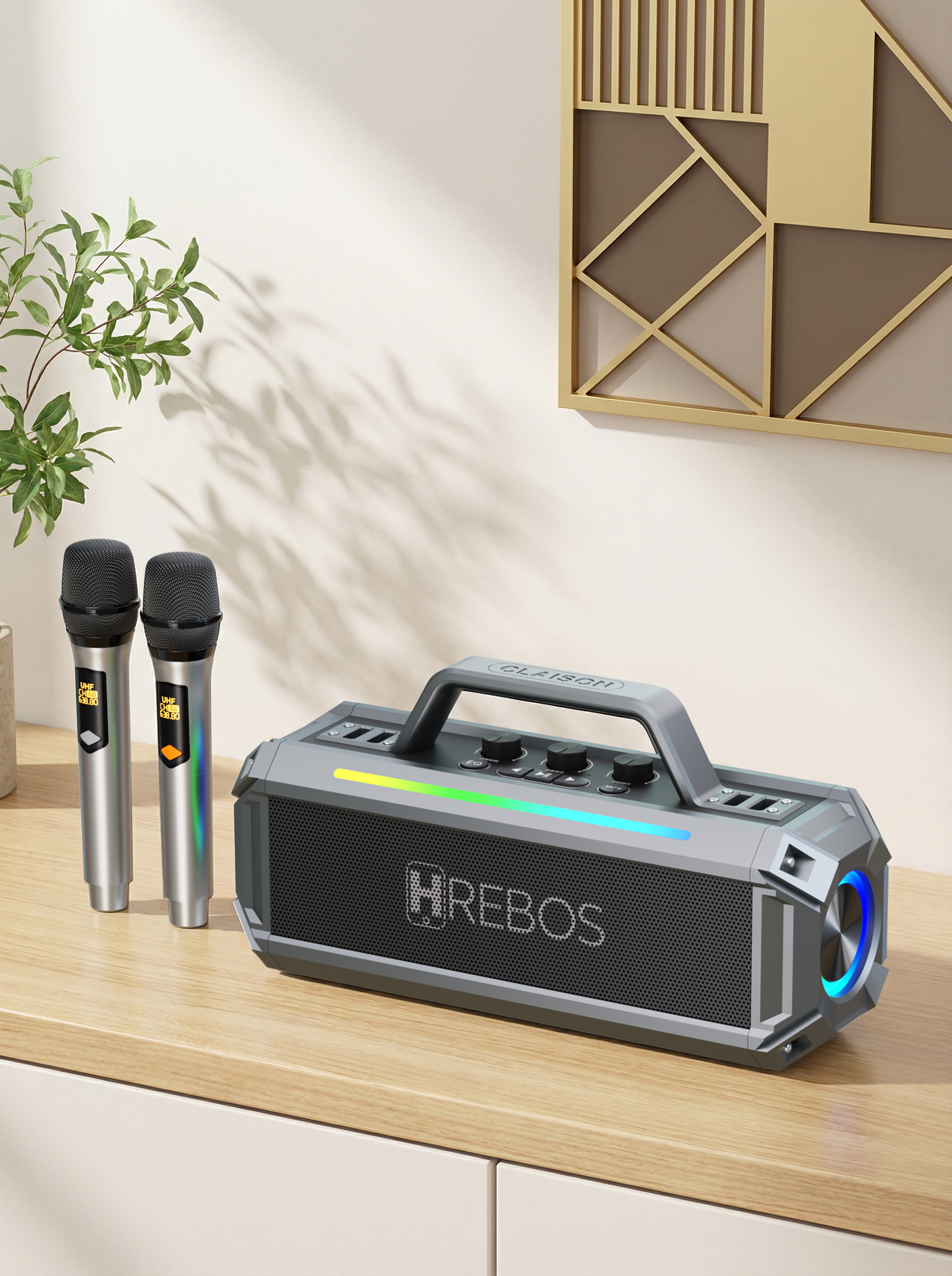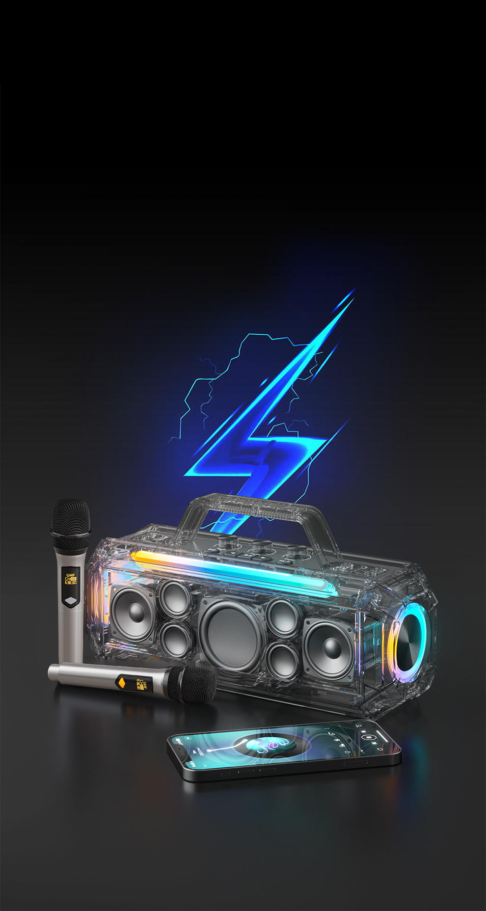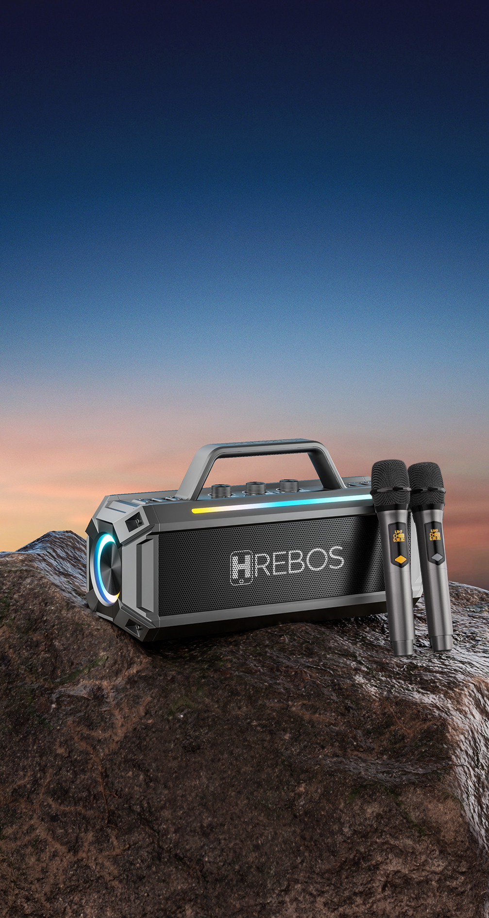 | Conteúdo da embalagem | Caixa de som + 2 microfones |