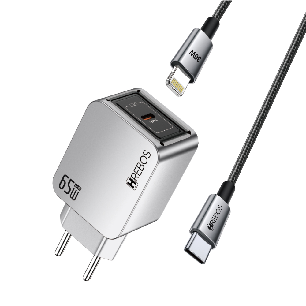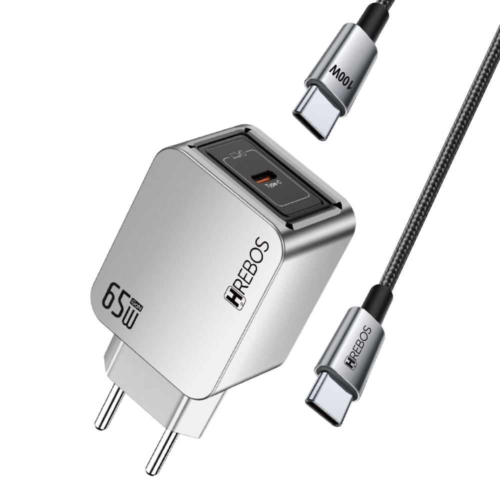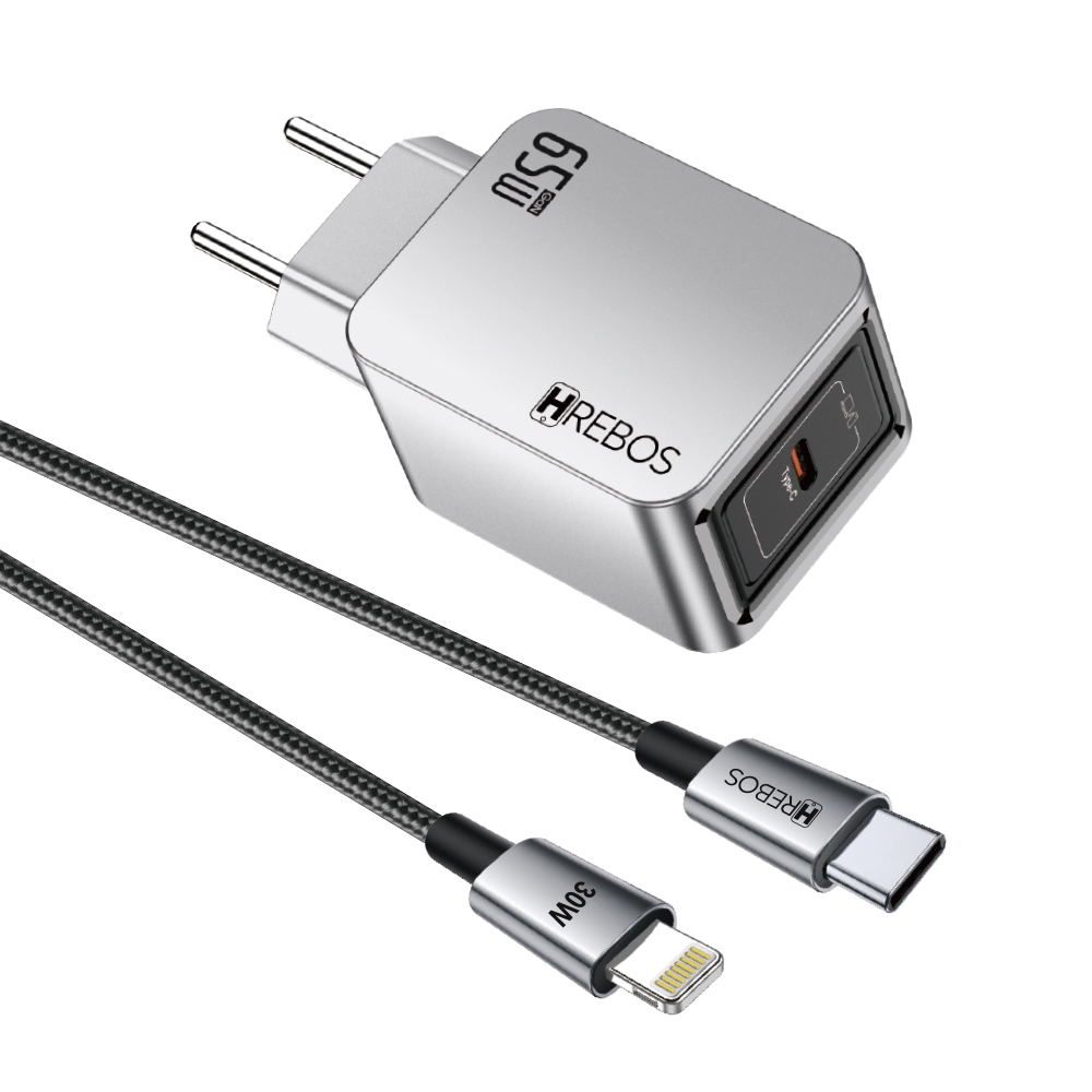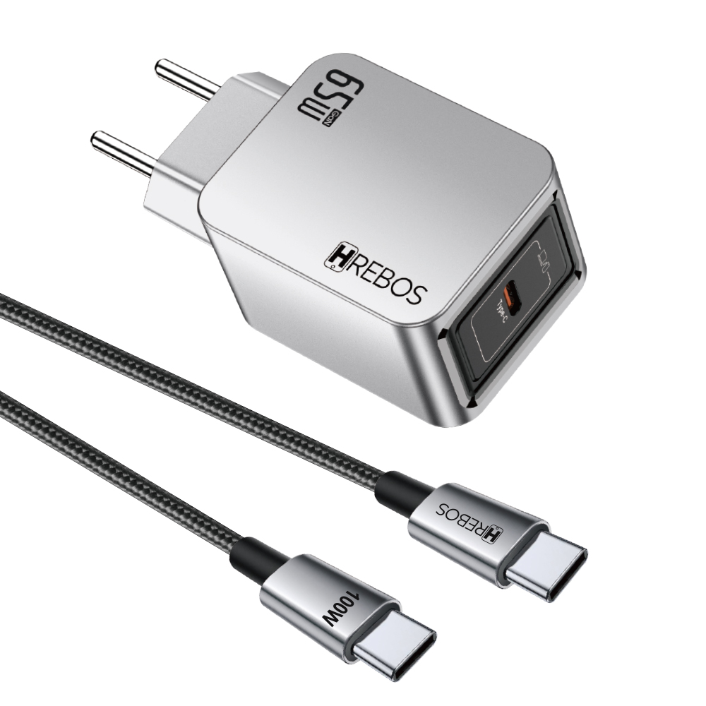 Hrebos Premium | Carregador Blink Charge 65W - Cinza