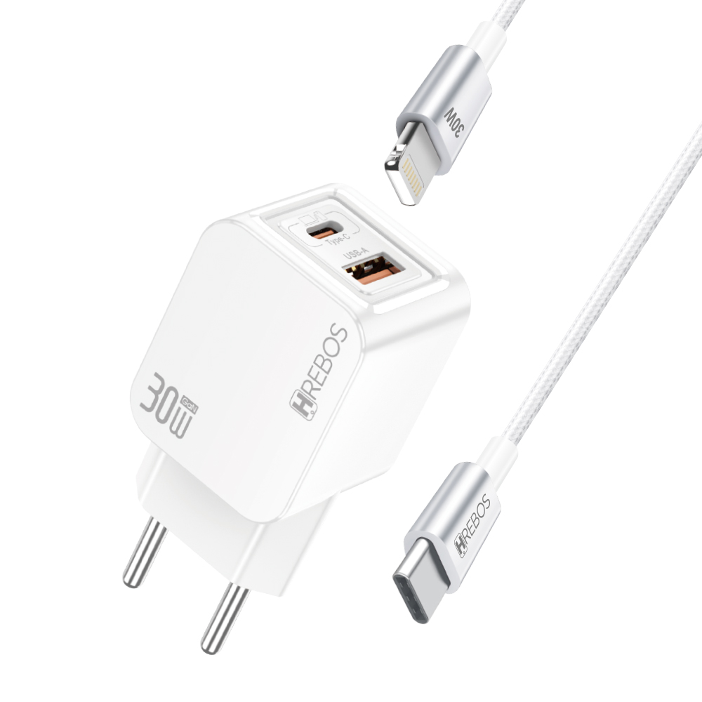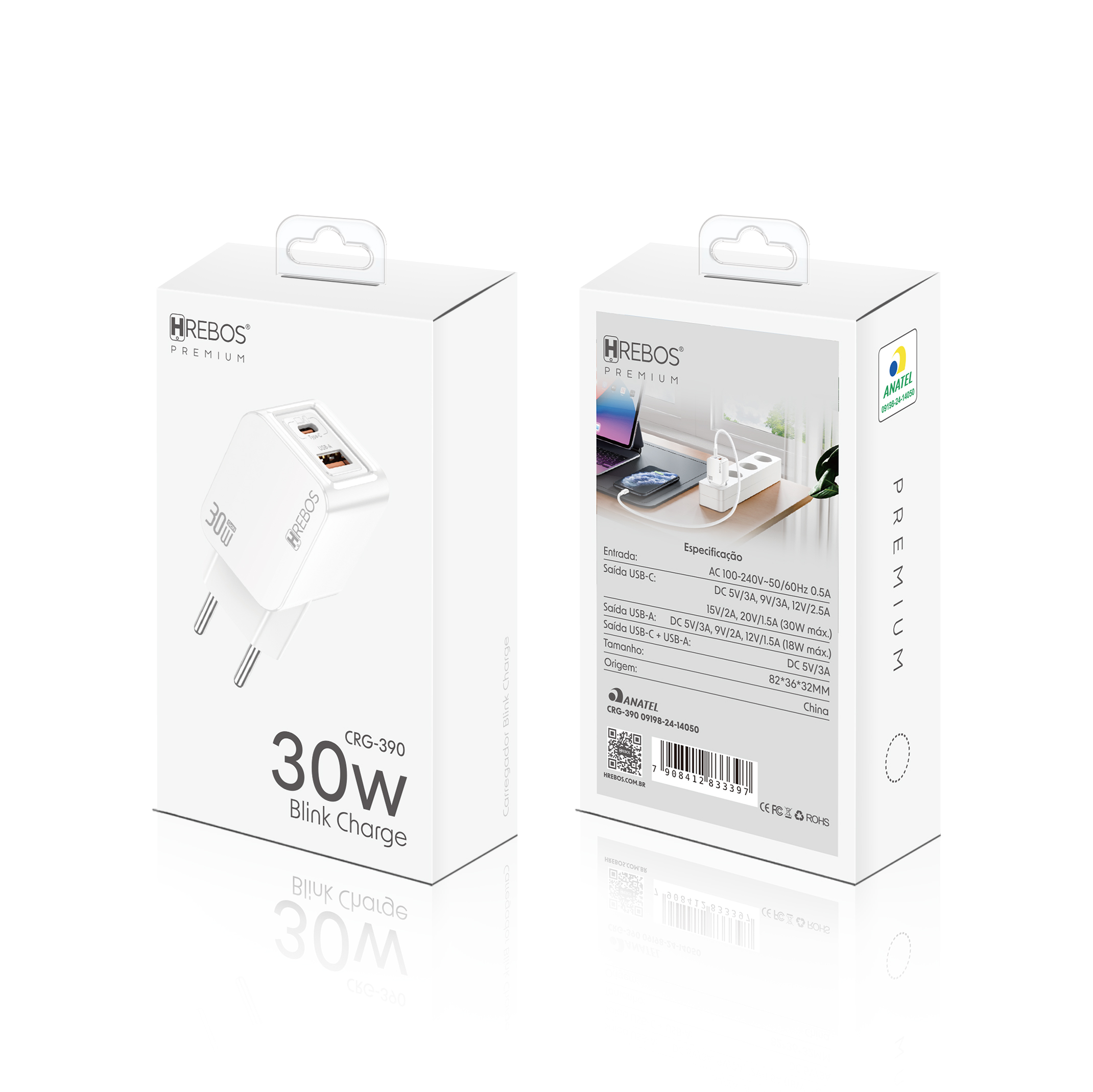O Hrebos Blink Charge 30W foi desenvolvido para oferecer carregamento rápido, seguro e eficiente no dia a dia. Compacto e moderno, ele conta com saída USB-C e saída USB-A, permitindo alimentar diferentes dispositivos com praticidade.