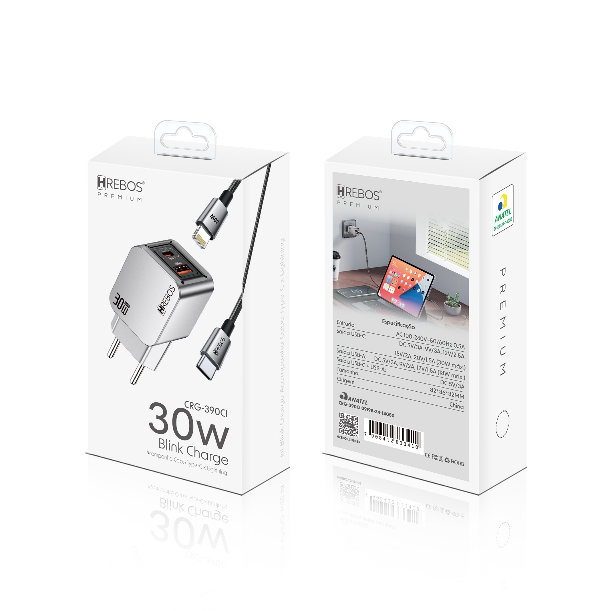 - CRG-390CI: carregador 30W + cabo Type-C x Lightning